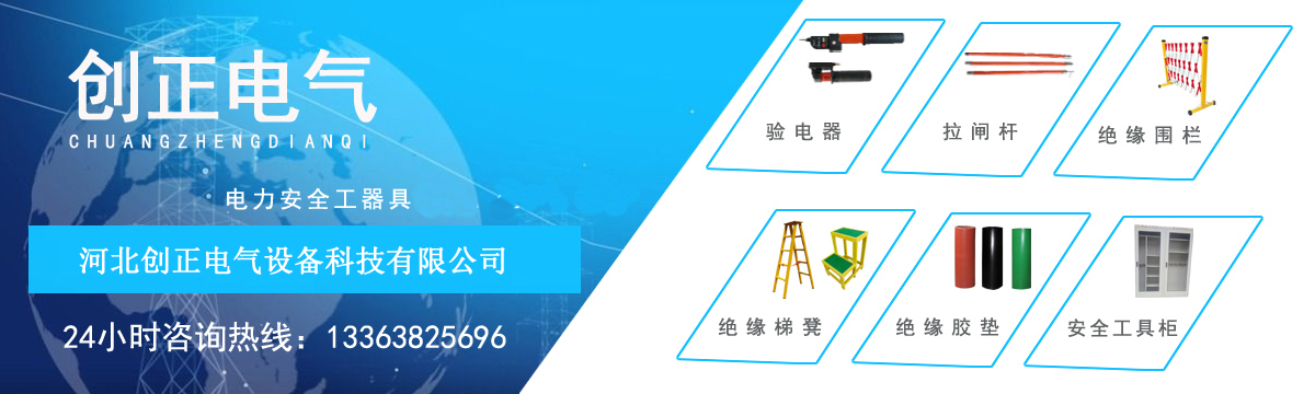 河北创正电气设备科技有限公司主要经营产品包括:高压验电器、高压接地线、高压拉闸杆、绝缘橡胶垫、绝缘伸缩围栏、绝缘梯、安全工具柜、绝缘凳、挡鼠板、安全警示带、绝缘台、安全带、脚扣、安全帽、标识牌、绝缘手套、绝缘靴等电力安全工器具。公司以“服务电力系统,努力永无止境”为目标,以“人才就是生产力”为战略,以经验为依托,以理念为指导,以员工为基础,以市场为支撑,贯彻“以顾客需求为上”的经营理念,以合格的质量,合理的价位,适应市场的需求。 [详细介绍]